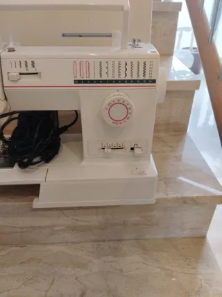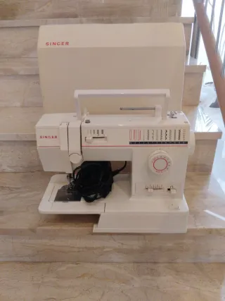 Máquina de coser Singer en color blanco. - Diseño clásico y funcional. - Incluye su tapa protectora.