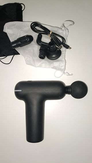 Pistola de masaje mini para liberar tensión de los músculos. Con varias intensidades y 4 cabezales . Con carga usb