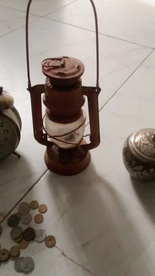 Reloj despertador clásico con un diseño de doble campana y acabado en latón. Ideal para coleccionistas o como pieza decorativa. - Mecanismo de cuerda. - Dos campanas superiores. - Pata de apoyo. Y lampara 70 euros todos y solo 60