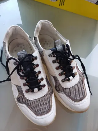 Zapatillas de moda de Massimo Dutti en color blanco y detalles plateados. - Exterior de piel y malla. - Cierre con cordones. - Suela de goma. - Diseño moderno y versátil. 38 talla