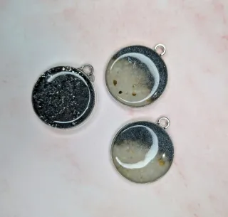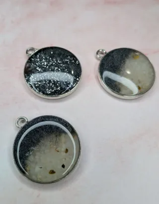 Colgante artesanal de resina ✨ Pieza única hecha a mano, con un diseño elegante y moderno en tonos grises y negros. Perfecto para dar un toque especial a cualquier look. Incluye cadena de acero inoxidable o cordón negro (a elegir). Precio: 18 €. Ideal para regalar o para darte un capricho 💙