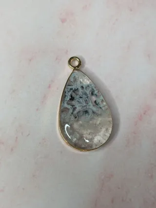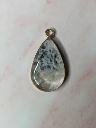 Colgante artesanal de resina – pieza única Colgante en forma de lágrima hecho a mano con resina. Diseño delicado en tonos claros y efecto marmoleado, con acabado brillante. Puedes elegir: Cordón negro Cadena de acero inoxidable Ligero y cómodo, ideal para el día a día o para un regalo especial. Cada pieza es única y hecha a mano con cuidado. ✨