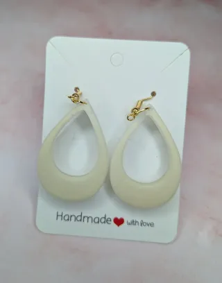 Pendientes artesanales de resina ✨ Pendientes hechos a mano en resina, con un diseño en forma de gota y un elegante acabado mate pulido, suave al tacto y muy ligero. Su tono neutro los hace fáciles de combinar y perfectos para el día a día. Precio: 9 € 💛