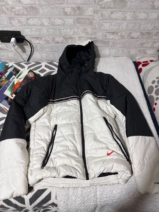 Chaqueta deportiva Nike con diseño bicolor. - Color negro y blanco. - Capucha. - Cremallera frontal. - Bolsillos laterales con cremallera. - Logo de Nike en rojo.
