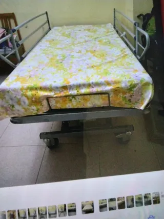 Cama articulada de hospital, en buen estado. - Estructura metalica , medidas 2 metros por 78 cm ( cabecero y piecero desmontados ) - Cabecero y piecero con barandillas. - Colchon con muy poco uso . - En perfecto funcionamiento . NO SE HACEN ENVIOS