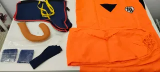 Disfraz de Goku para niño o adulto, ideal para fiestas o eventos. A ESTRENAR - Incluye camiseta naranja con símbolo. - Pantalón naranja. - Cinturón - Brazaletes azules. - Cubrebotas azules con detalles rojos y amarillos.