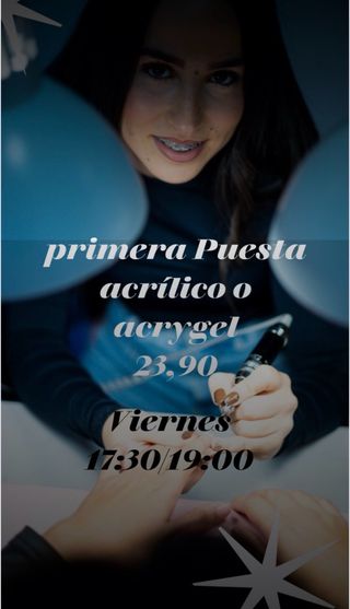 Primera puesta de uñas acrílicas o acrigel. - Precio: 23,90€ - Disponible los viernes de 17:30 a 19:00.
