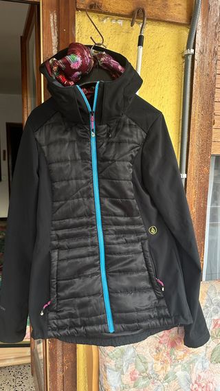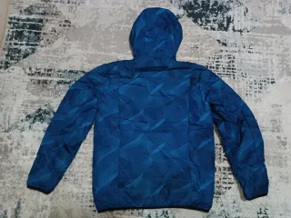 Chaqueta Quechua con un diseño moderno y llamativo. - Color azul con estampado geométrico. - Capucha integrada. - Cierre de cremallera. - Bolsillos laterales con cremallera.