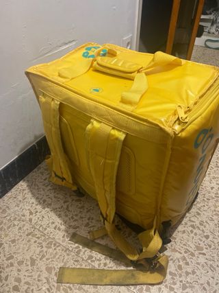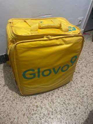 Mochila de reparto Glovo en color amarillo. - Diseño espacioso y práctico. - Asas superiores para un fácil agarre. - Cierre de cremallera frontal.