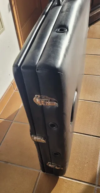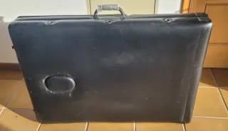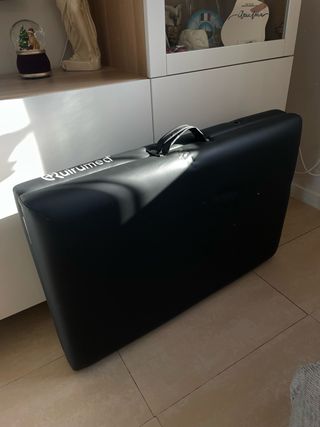 Camilla masaje polipiel negra, plegable y con cierre como una maleta. Tiene distintos cabezales para cambiar. Está sin usar
