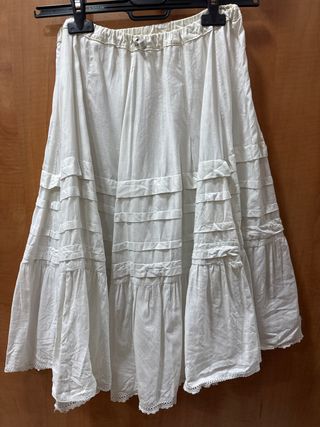 Preciosa enagua blanca para niña, con un diseño de volantes y puntilla. - Tejido ligero y cómodo. - Cintura elástica para un mejor ajuste. - Detalle de puntilla en el bajo. Medidas de largo 64 cms x 66 cms cintura
