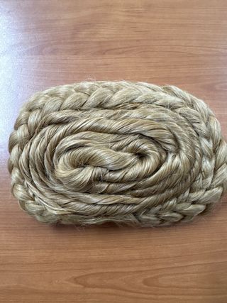 Conjunto de pelo postizo para fallera, ideal para completar el peinado tradicional. - Moño trasero - Dos rodetes. - Color rubio 24 Está para deshacerlo y volverlo a coser. De ahí su precio. No Negociable