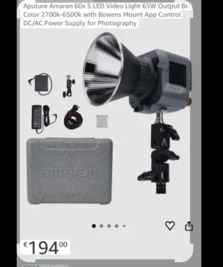 Aputure Amaran 60x S LED Video Light 65W Output Bi Color 2700k-6500k with Bowens Mount App Control DC/AC Power Supply for Photography