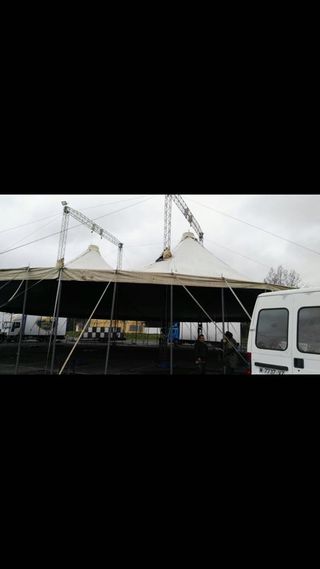 SE AQUILA Carpa de circo 25 x 21 metros, 9 metros altura interior, capacidad para 500 personas de pié. Servicio de transporte, montaje, desmontaje, regiduría, tecnicos de sonido, nos adaptamos a cada evento. También disponemos de las gradas para 300 personas, escenario de 8x8metros, luces , sonido, generador.... Dinos ¿que necesitas? Tel. Contacto 692359738