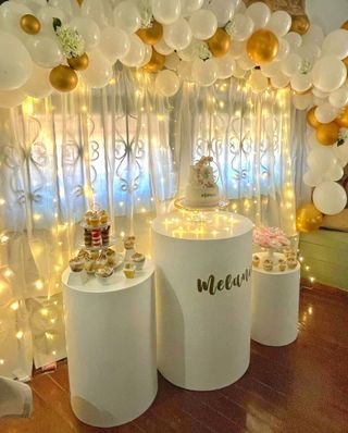 ALQUILER MOBILIARIO QUINCEAÑERA: ✨ Conjunto de mesas / CILINDROS grandes para decorar con flores y/o globos, a conjunto con su set de BANDEJAS de soporte de tartas y cupcakes ✨ Set de 3 arcos grandes de fondo para tu fiesta, comunión, bautizo, boda, cumpleaños, gender reveal etc ideal para decorar con flores, telas o globos ✨ HINCHADOR de globos automático ✨ Arco GRANDE para decoración de fiestas con globos, flores etc (2,20m) ✨ CARRITO grande blanco para CANDY BAR ✨ Cubos transparentes con letras BABY o tu nombre ¡Y MÁS OPCIONES! Pregunta sin compromiso 📍 Zona de Madrid