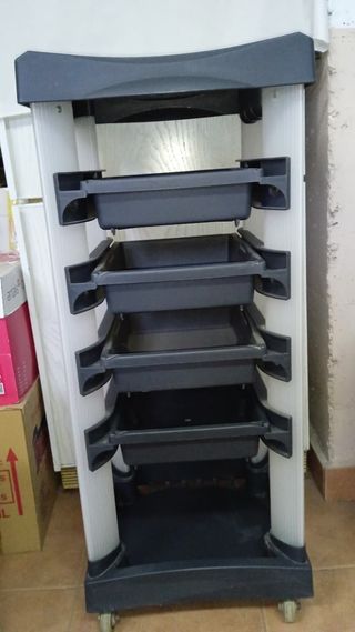 Se vende carrito auxiliar para peluquería, en buen estado. Tiene algunas señales de uso, pero está en general bien conservado y funciona bien solamente necesita una buena limpieza. - Carro con ruedas para facilitar el movimiento. - Bandejas extraíbles para una mejor organización.