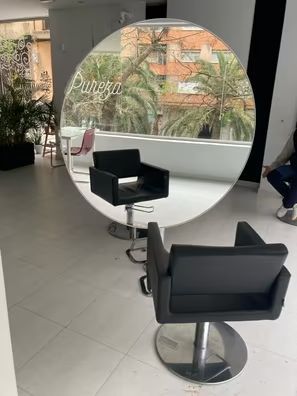 Vendo mobiliario de peluquería usado que incluye tres sillas de corte, dos lavacabezas, un carrito auxiliar y varios espejos. El mobiliario está en buen estado, aunque presenta señales normales de uso. - Tres sillas de corte negras. - Dos lavacabezas con sus respectivos grifos. - Un carrito porta-utensilios. - Varios espejos de pared.