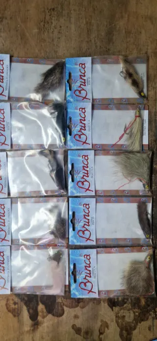 Conjunto de señuelos de pesca de agua dulce de la marca Brinca. - Varios modelos y colores. - Diseñados para atraer peces. - Empaquetados individualmente.