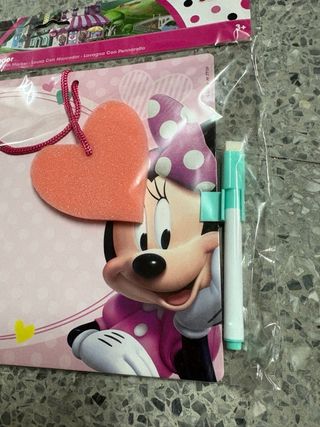 Pizarra infantil de Minnie Mouse con rotulador. - Diseño con Minnie Mouse y corazones. - Incluye rotulador. - Sin abrir.