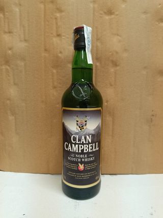 Whisky Clan Campbell 70 cl, todas las botellas están sin abrir y en perfecto estado. Blended escocés clásico, suave y equilibrado, ideal para disfrutar solo o en copa. Entrega únicamente en mano en Castalla (España).
