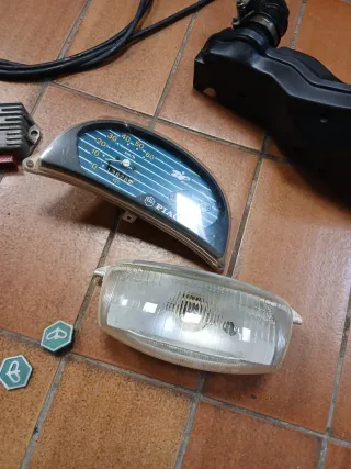 Piezas de despiece para Piaggio Zip. - Cable de acelerador. - Cable de freno. - Intermitentes naranjas (2 unidades). - Regulador de corriente. - Carenado de filtro de aire. - Cuadro de instrumentos. - Faro delantero. - Tapas de plástico verdes (2 unidades). - Soporte de goma.