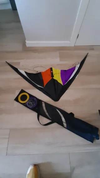 Vela delta de colores vibrantes, ideal para disfrutar del aire libre. Viene con su bolsa de transporte. - Diseño triangular. - Colores: negro, naranja, amarillo y morado. - Incluye bolsa de almacenamiento.