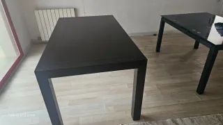 Mesa de comedor de diseño moderno con acabado en negro. - Estructura robusta. - Superficie lisa y uniforme.