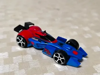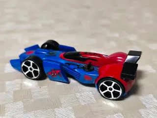 Coche de juguete con diseño inspirado en Spider-Man. - Colores azul y rojo. - Detalles de Spider-Man y Spider-Man escrito en el lateral. - Alas traseras negras. rueda bien, descuento 10% pedidos de mas de 25e. Envio a partir de 5e. #hot wheels, matchbox, lesney, lot voitures, mattel, burago, solido, welly, guisval, mira.