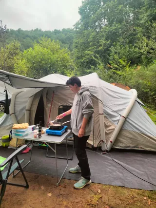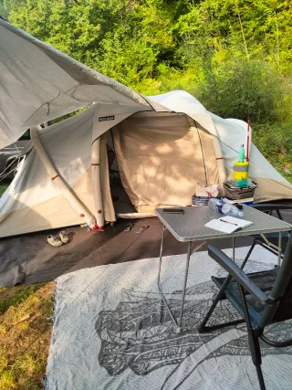 Tienda de campaña hinchable, ideal para tus escapadas al aire libre. Se incluye el hinchador. - Sistema de inflado rápido. - Diseño espacioso y confortable. La hemos usado dos veces. Solo que queremos hacer un cambio a furgo.