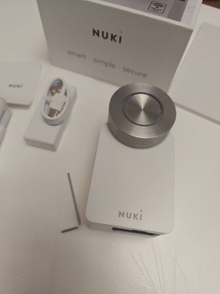 Cerradura inteligente Nuki Smart Lock 3.0 Pro en muy buen estado. - Incluye el dispositivo principal. - Viene con accesorios de montaje. - Incluye cable USB y manuales.