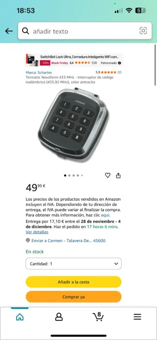 • De media, comprar Cerradura en Wallapop es un 44% más barato que comprar este tipo de producto nuevo