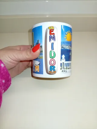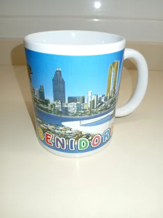 Taza con diseño del skyline de Benidorm. Ideal para coleccionistas o como recuerdo. - Ilustración de la costa y edificios emblemáticos. - Colores vivos y diseño atractivo.