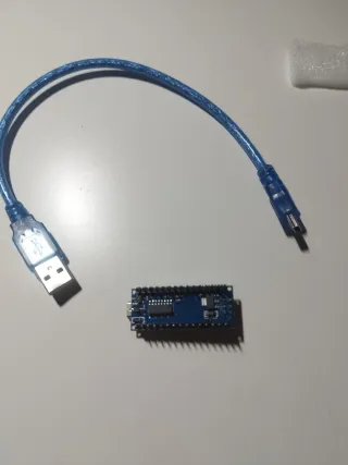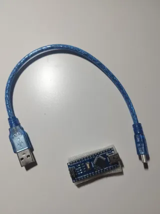 Placa de desarrollo Arduino Nano con cable USB azul. Para programar variadores de crawler am32 - Placa Arduino Nano. - Cable USB a Micro USB.