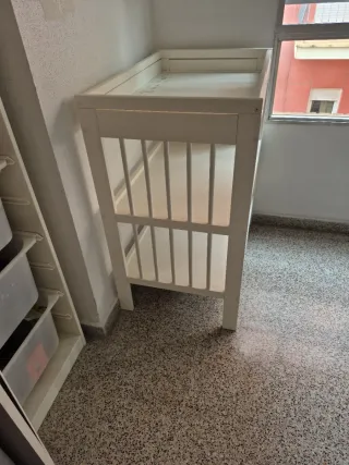 Mueble cambiador blanco con estantes