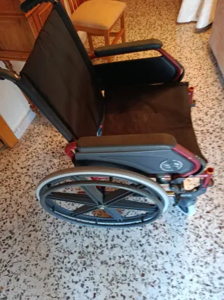 Silla de ruedas en buen estado, lista para su uso. - Diseño plegable para facilitar su transporte y almacenamiento. - Ruedas grandes para mayor maniobrabilidad. - Reposabrazos acolchados para mayor comodidad.