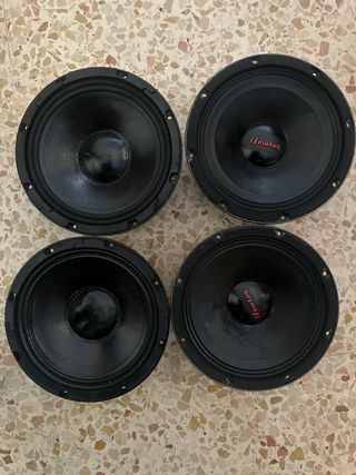 Se venden cuatro medios beyma de 8 pulgadas de 250 rms cada uno,son 2 medios beyma pro mi y 2 medios beyma 8G40,estan en perfecto estado de funcionamiento,solo 1 de ellos lleva la pompa rota pero eso no afecta en nada a su funcionamiento es solo visual,cambiarla vale super poco unos 5 o 10 euros y 4 super tuiter 2 aps y 2 beyma ast-09(cambiaria por play 5)