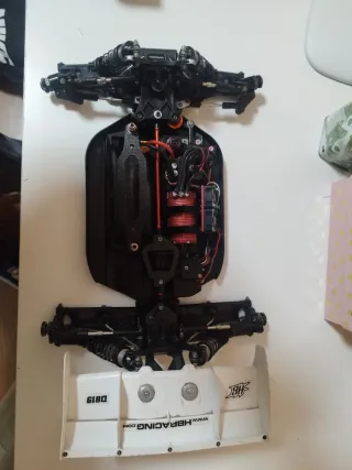 Buggy RC a escala 1/8 de la marca HB Racing, modelo E819 sin electrónica.Poco uso bastante extras en carbono y muchos recambios , trapecios nuevos barras estabilizadoras de todos los grosores placas a ,b,c,d pistones para los amortiguadores etc
