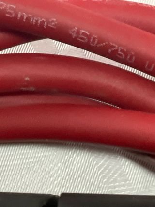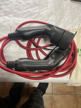 Cable de carga para vehículos eléctricos. El cable es de color rojo y cuenta con conectores robustos. - Longitud del cable: [insertar longitud si se conoce] - Tipo de conector: [insertar tipo de conector si se conoce] - Material del cable: [insertar material si se conoce]