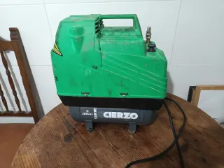 Compresor de aire de color verde, con manómetro. - Carcasa de plástico. - Conexión para manguera.