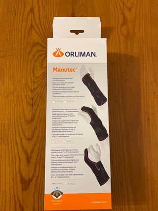 Férula de muñeca Orliman Manutec, diseñada para el soporte de los metacarpianos 4 y 5. - Soporte de muñeca semirrígido. - Incluye férula palmar/dorsal. - Diseñada para los metacarpianos 4 y 5. Talla 1 Uso de una semana