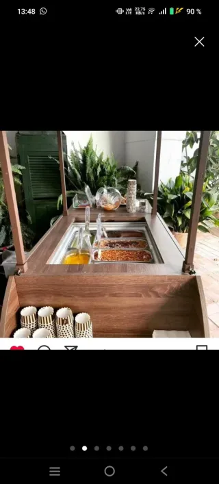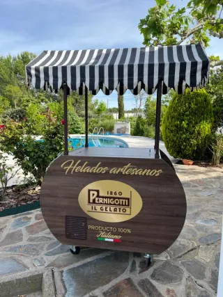 Carro de helados artesanos con diseño italiano. - Estructura de madera. - Marca Pernigotti Il Gelato. - Producto 100% Italiano.