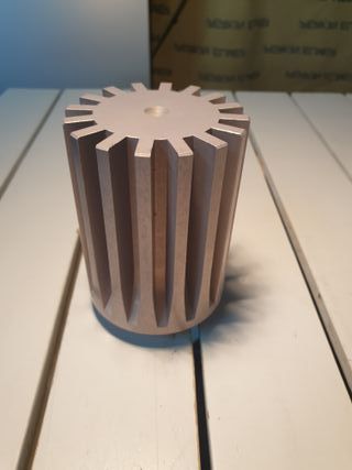 Refrigerador de componente electrónico, tipo CPU de alta potencia - Material metálico. - Diseño con estrías. - Parte superior con un orificio central de fijación.