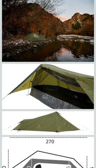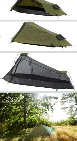 Tienda de campaña ultraligera, modelo Gran Canyon. Diseñada para una persona. Muy ligera, compacta, ocupa muy poco. - Color verde. - Diseño compacto y ligero. - Materiales resistentes. - Peso 1,700kg Usada una vez está impecable