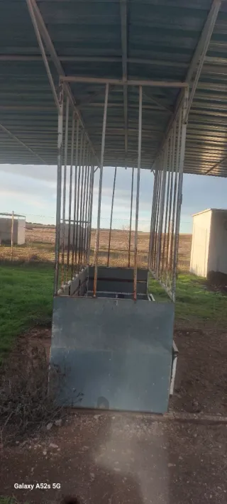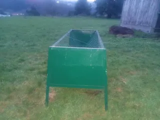 Comedero metálico de gran capacidad, ideal para ganado vacuno. - Estructura robusta de metal. - Diseño abierto para fácil acceso. - Base estable con patas.