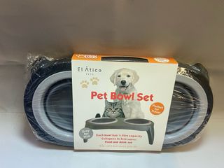 Set de comederos para perros o gatos de la marca El Ático Pets. Ideal para viajes. - Capacidad de 1/2 litro por bol. - Colapsable hasta 3cm de grosor. - Color gris.