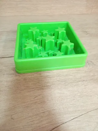Plato interactivo de color verde para perros, con diseño de estrellas. Me costó 30€. Mide 20cmx20cm - Fabricado en plástico resistente. - Múltiples compartimentos para la comida.