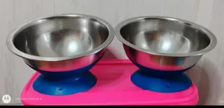 INFORMACIÓN A TENER EN CUENTA: No hago ventas en persona, me da igual la distancia, SÓLO HAGO ENVÍOS, EXCLUSIVAMENTE MEDIANTE INPOST 👈 💶 PRECIOS NO NEGOCIABLES 🎁 Siempre envío un detallito con cada compra. ⛔ No se admiten devoluciones, no me hago responsable del trato de los paquetes durante el envío. Siempre hago los envíos con artículos bien protegidos y bien embalados. Set de dos comederos o bebederos inclinados para mascotas. - Fabricados en acero inoxidable. - Base de plástico azul tipo ventosa para facilitar sujeción. - Diseño que facilita el acceso a la comida o agua.