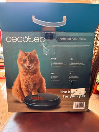 Comedero automático Cecotec Pumba 1600 para mascotas pequeñas. Está en perfecto estado y listo para usar. - Capacidad de 1.6L. - 4 compartimentos para comida. - Dispensador de gran capacidad. - Con luz LED.