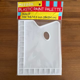 Paleta de pintura plástica de la marca MEEDEN. Cuenta con 17 compartimentos para mezclar y organizar tus colores. - Material: Plástico. - Dimensiones: 28x22x1 cm.