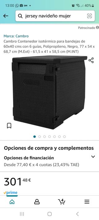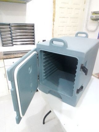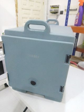 Disponemos de contenedores isotermos, marca CAMBRO, distintos tamaños, te permiten organizar el transporte de productos calientes, fríos y congelados; manteniendo la temperatura correcta. El precio varia con el tamaño. En perfecto estado de uso, disponemos de algunos modelos incluso nuevos en su embalaje original. Todo en maquinaria y mobiliario de hostelería, supermercados y alimentación. Estamos en Torrejón de la Calzada (Madrid), C/ Segunda Avenida 18, Pol Ind Las Avenidas, salida 28 de la carretera de Toledo A42. Envíos económicos a toda España. IVA no incluido en el precio.
